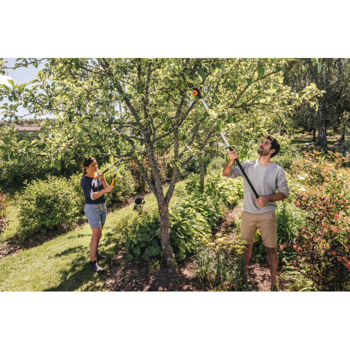 Сучкорез подходит для подрезки свежих веток диаметром до 38 мм. Лезвия из нержавеющей стали остаются острыми длительное время. Антифрикционное покрытие верхнего лезвия обеспечивает чистый срез и препятствует образованию коррозии. Рукоятки из легкого алюминия, устойчивы к перепадам температуры. Покрытие рукояток SoftGrip обеспечивает комфорт при работе. Зубчатый механизм из стали гарантирует максимальную мощность инструмента и увеличивает режущую силу в 3 раза по сравнению со стандартными конструкциями Fiskars. Благодаря контурному покрытию рукояток из материала SoftGrip комфортный захват во время работы вам обеспечен.