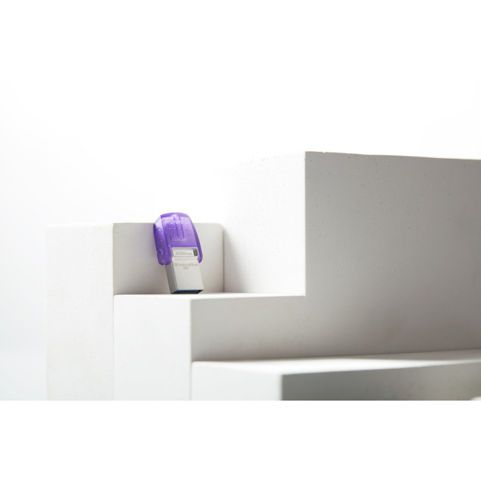 DataTraveler microDuo 3C має подвійний інтерфейс, який працює як із новими портами USB Type-C, так і з традиційними портами USB Type-A. Це ідеальний спосіб звільнити місце на смартфоні або планшеті, забезпечивши 256 ГБ додаткової пам'яті для зберігання фотографій та відео. Привабливий форм-фактор забезпечує зручне підключення за принципом "підключи та працюй". Швидка передача файлів між пристроями за допомогою USB 3.2 Gen 1 зі швидкістю до 200 МБ/с під час читання.