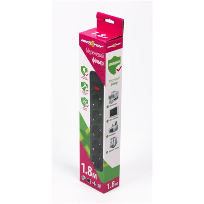 Фільтр живлення Maxxter 5 розеток 1.8м (SPM5-G-6B) чорний