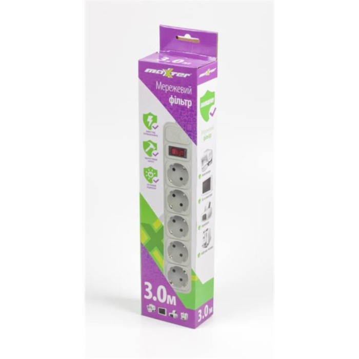 Фільтр живлення Maxxter 5 розеток 3м (SPM5-G-10G) сірий