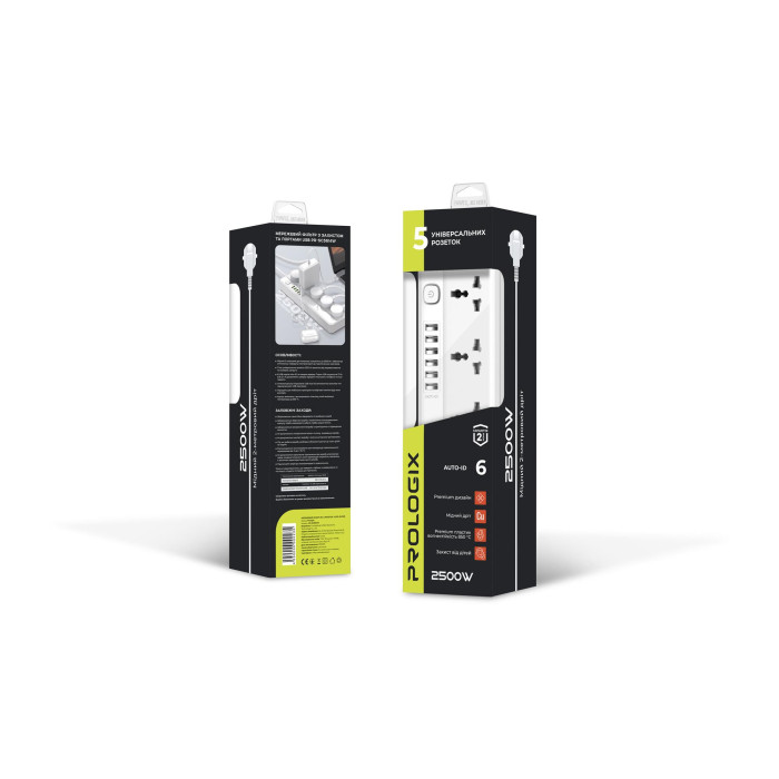 Фільтр живлення ProLogix Premium (PR-SC5614W) 2.5 кВт, 5 розеток, 6 USB AUTO ID, 2 м, білий