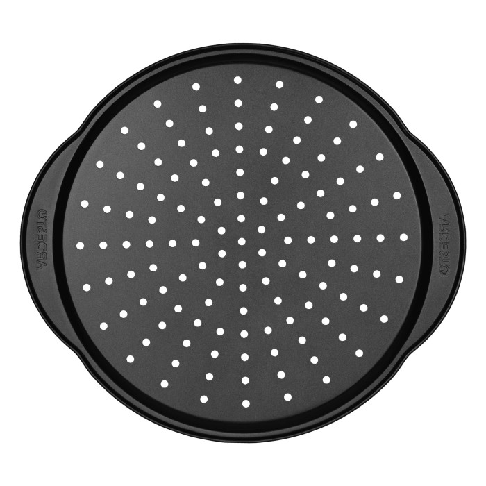 Випікання піци у формі ARDESTO Gemini – запорука чудового результату щоразу! Ця кругла форма з вуглецевої сталі (37 × 33 × 1,8 см) має спеціальні отвори для циркуляції повітря, забезпечуючи рівномірне пропікання. Вона витримує температуру до +230 °C, а завдяки товщині поверхні 0,4 мм піца матиме хрусткі золотисті краї та основу й водночас ніжну начинку всередині. Аби форма слугувала якомога довше, не рекомендовано миття в посудомийній машині.
