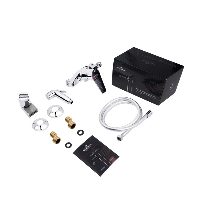 Гарнітур для гігієнічного душу зовнішнього монтажу Kroner KRP Enzo - C052 чудовий варіант для реалізації функції біде навіть у невеликому санвузлі. Корпус виготовлений із вискоякісної латуні, що забезпечує довговічність та безпечність в експлуатації виробу. Змішувач оснащений керамічним картриджем, що забезпечує плавне регулювання температури та напору за допомогою важеля. У комплекті є ручна лійка з натискною клавішею, а також все необхідне для настінного монтажу.
