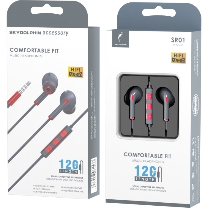 Зовнішній вигляд та параметри конструкції навушників SkyDolphin SR01 Red