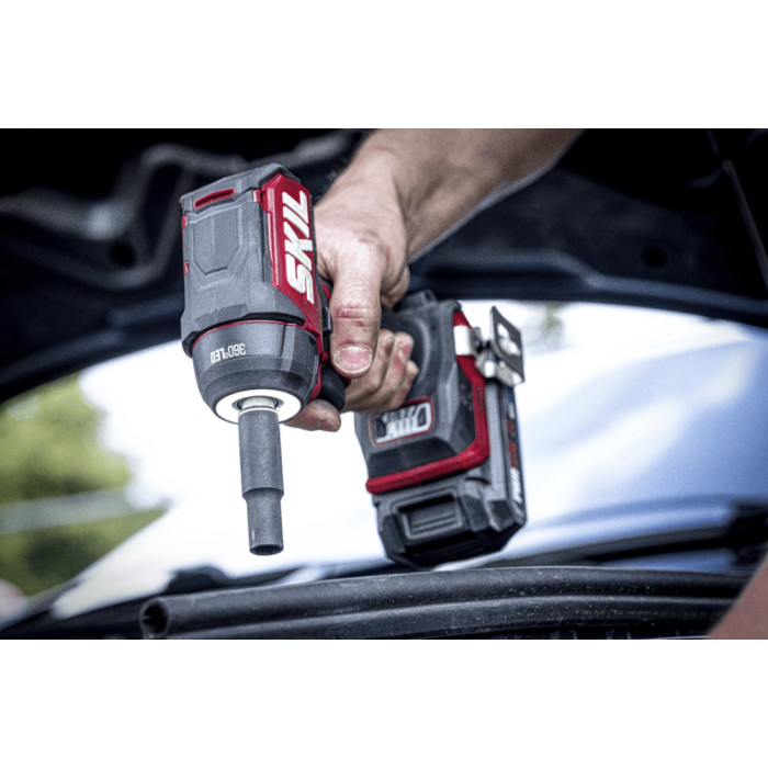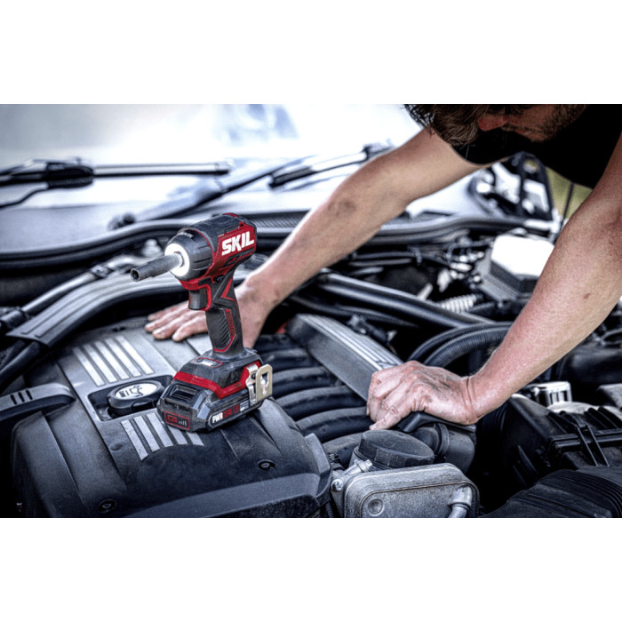 Компактний безщітковий акумуляторний ударний гайковерт з високим крутним моментом із трьома швидкостями та режимом контролю реверсу «Reverse control mode» Акумуляторний ударний гайковерт «20V Max» 3265 є частиною асортименту компактних безщіткових інструментів SKIL. Ці інструменти надзвичайно компактні і пропонують поєднання високої продуктивності, довговічності та неперевершеного рівня зручності. Як і всі інші акумуляторні інструменти SKIL «20V Max», ця модель живиться від акумуляторів і зарядних пристроїв, виготовлених за провідною в цій галузі передовою технологією «PWRCORE 20».