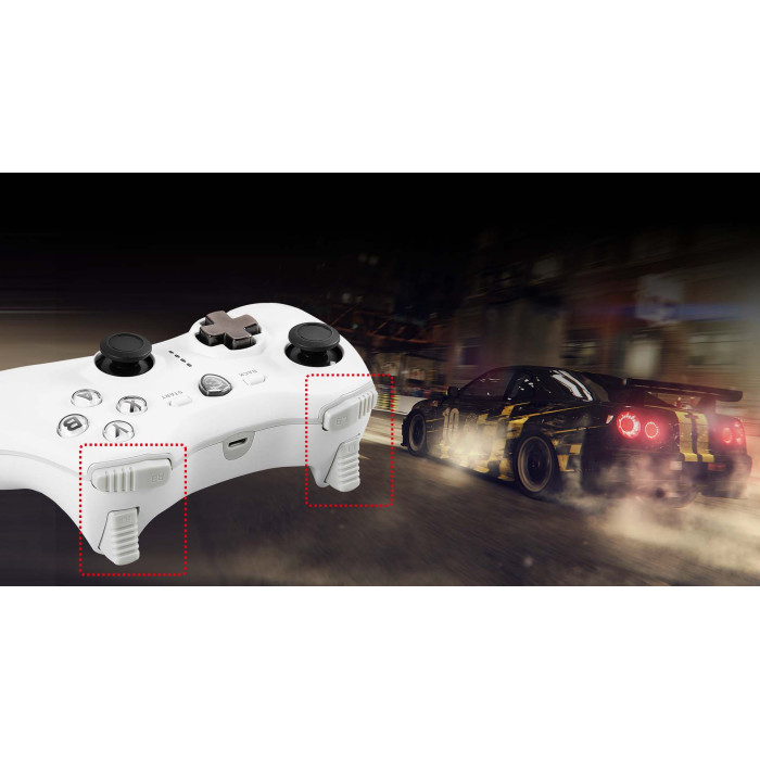 MSI Force GC20 V2 — дротовий геймпад для затятих гравців. Може використовуватися з різними платформами — ПК і Android-пристроями. У порівнянні зі звичайними контролерами, контролери серії Force GC використовують геймери, які по-справжньому насолоджуються своїми гоночними іграми за допомогою тригерів серії Force GC.