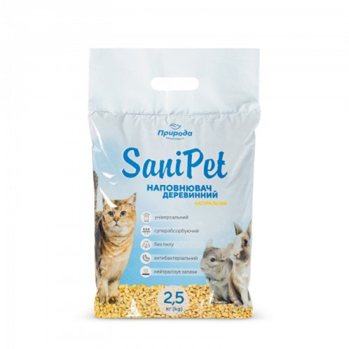 Гігієнічний наповнювач Природа Sani Pet «Універсальний» для котів, деревинний, 2,5 кг