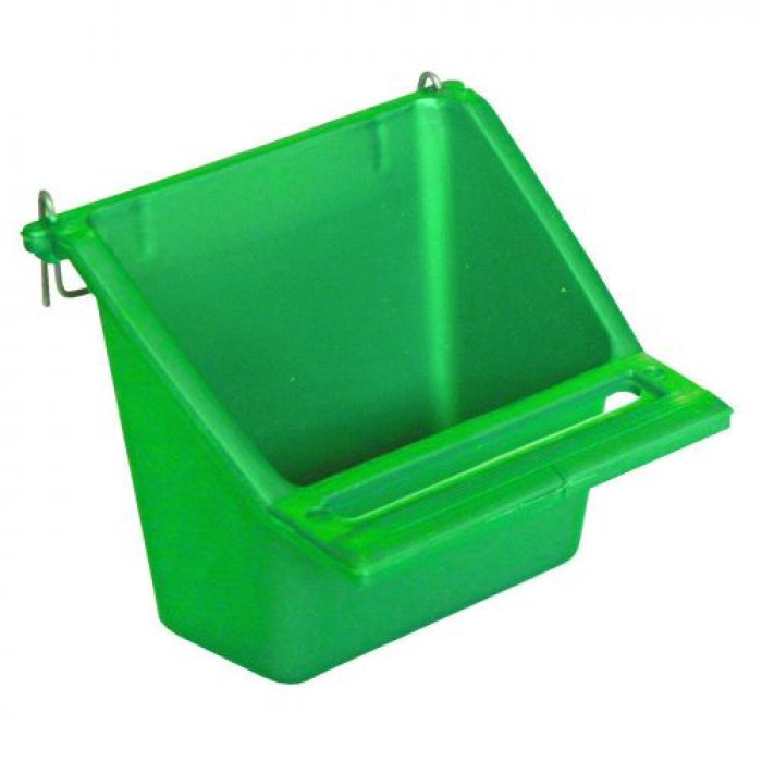 Годівниця повинна бути, перш за все, зручною. Ця годівниця має оптимальну форму і невелику жердинку, на яку птах може присісти і з комфортом поїсти. Годівниця виготовлена з якісного безпечного пластика і зручно кріпиться до клітки за допомогою гачків зі сталевого дроту. Легко миється і довго служить. Ваші пернаті улюбленці будуть задоволені!