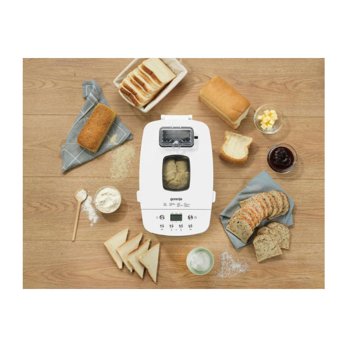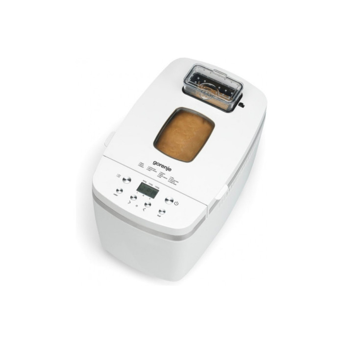 Gorenje Хлібопічка 750Вт, програм-14, макс.вага -1.350кг, форма прямокутник, пластик, білий