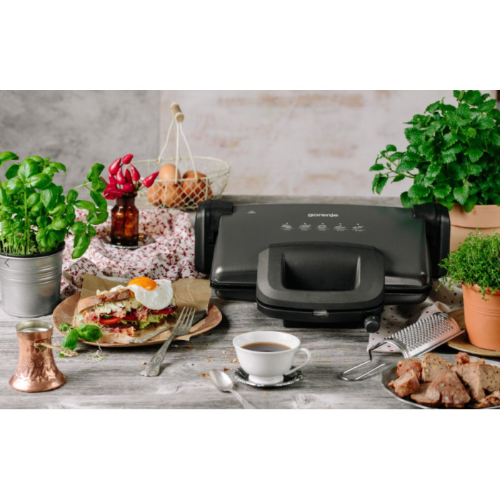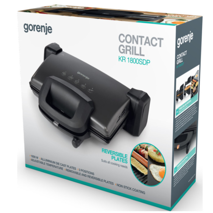 Гриль Gorenje прижимной 1800Вт, темп. режимов-4, съемные пластины, раскрытие на 180°, металл, графит (KR1800SDP)