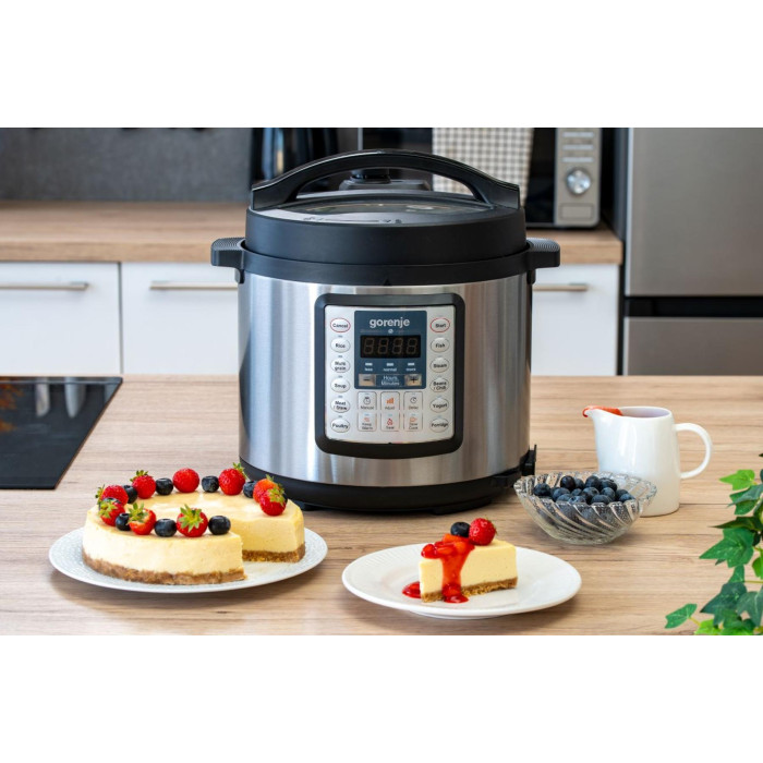 Gorenje Мультиварка-скороварка, 1000Вт, чаша-6л, електронне керув., 15 програм, метал/пластик, чорний