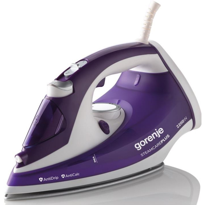 Утюг Gorenje, 2200Вт, 280мл, паровой удар -90гр, верт. отпаривание, антинакипь, керам. подошва, бело-фиолетовый (SIH2200BBC)