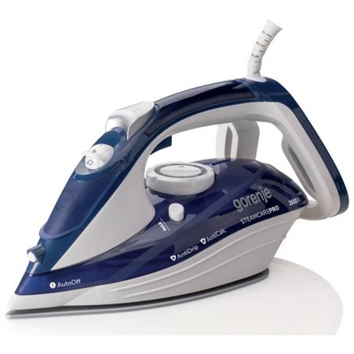 Утюг Gorenje, 2600Вт, 350мл, паровой удар 95гр, верт. отпаривание, антинакипь, автоотключение, керам. подошва, сине-белый (SIH2600BLC)