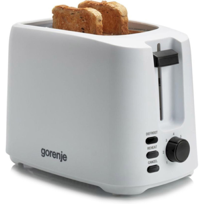 Тостер Gorenje, 850Вт, функц. размораживание, автоотключение, пластик, белый