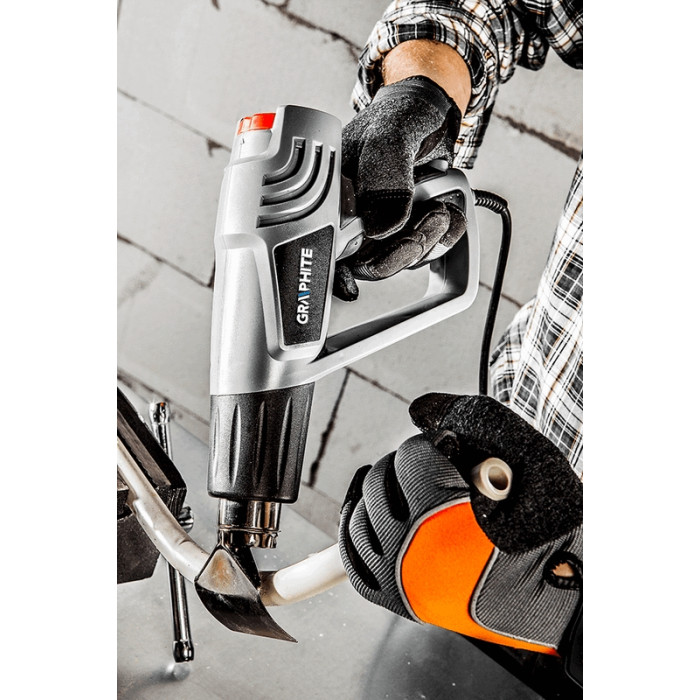 Профессиональный электрический термофен GRAPHITE (арт. 59G524) большой мощности 2000 Вт, предназначен для устранения лакокрасочных покрытий, гибки и сварки термопластика, размораживания, сушки и приклеивания элементов мебели. Электроинструмент оснащен четырехпозиционным переключателем, с помощью которого допускается выбор одного из 3 уровней температуры и интенсивности воздушной струи.