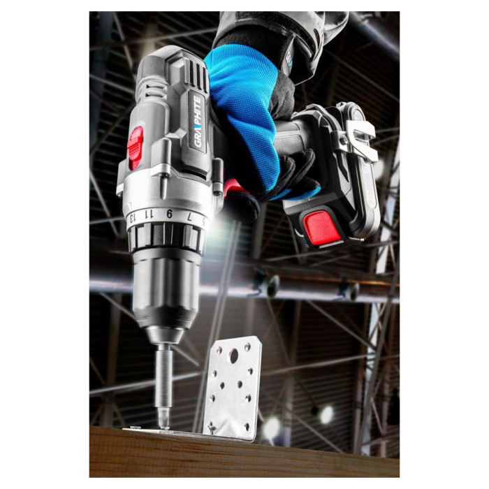 Двухскоростная дрель-шруповерт GRAPHITE, совместимая с аккумуляторами 18 В, Li-Ion, GRAPHITE Energy+. Электроинструмент характеризуется плавной регулировкой скорости вращения и оснащен переключателем направления вращения... Читать далее...