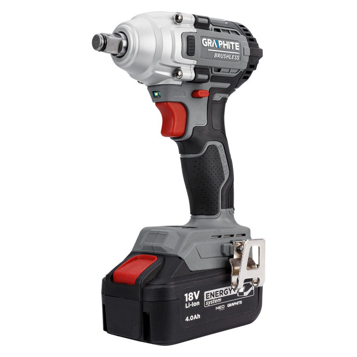 Ударний безщітковий гайковерт 1/2" макс. 330 Нм 18 В Energy+ 04-618 від GRAPHITE - це пристрій, що працює від акумуляторної системи Energy+. Він має насадку 1/2" і максимальний крутний момент відкручування гвинтів 330 Нм. Він досягає 180 Нм на 1-й передачі, 280 Нм на 2-й передачі та 320 Нм на 3-й передачі. Має можливість працювати на лівосторонніх швидкостях.