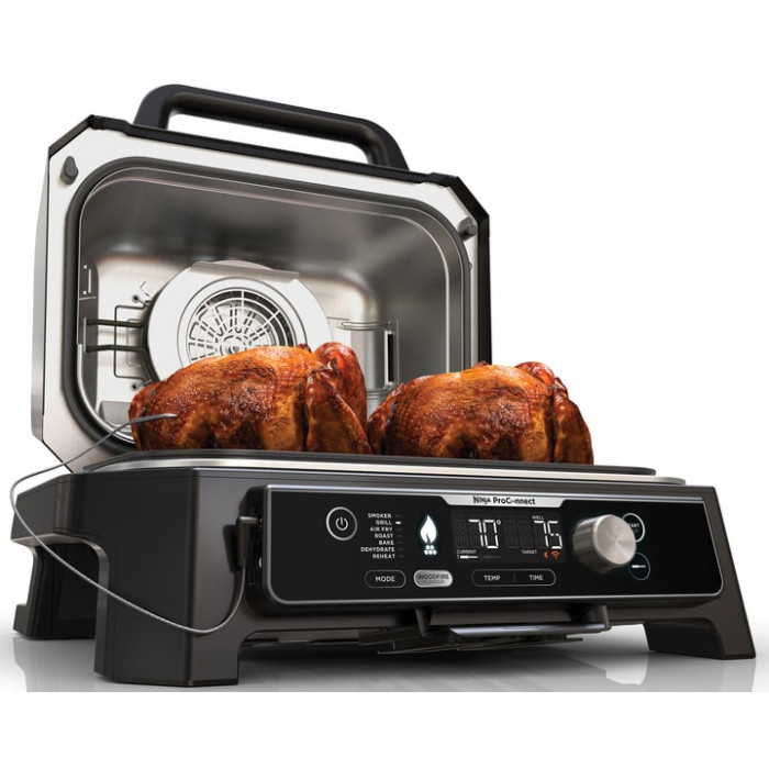 Ninja Woodfire Pro Connect BBQ Grill & Smoker дозволяє контролювати процес готування прямо з телефону, даючи вам повну свободу розслабитися і провести дорогоцінний час з друзями та родиною. Жодного зависання над грилем. Повний контроль приготування на долоні.