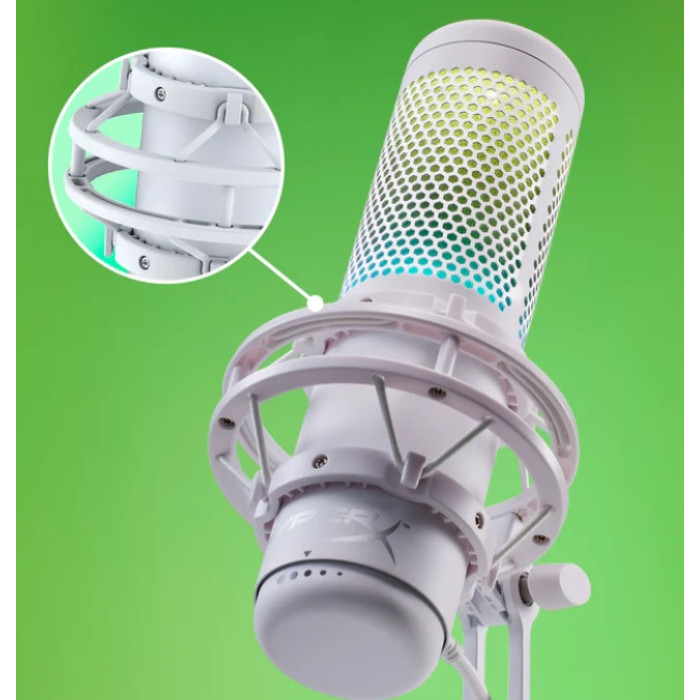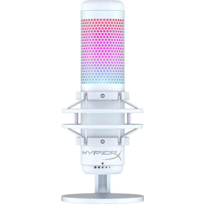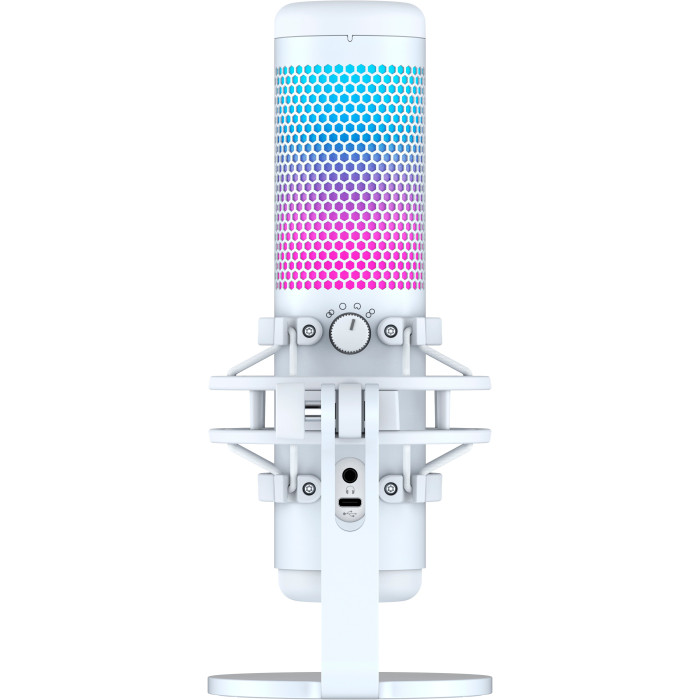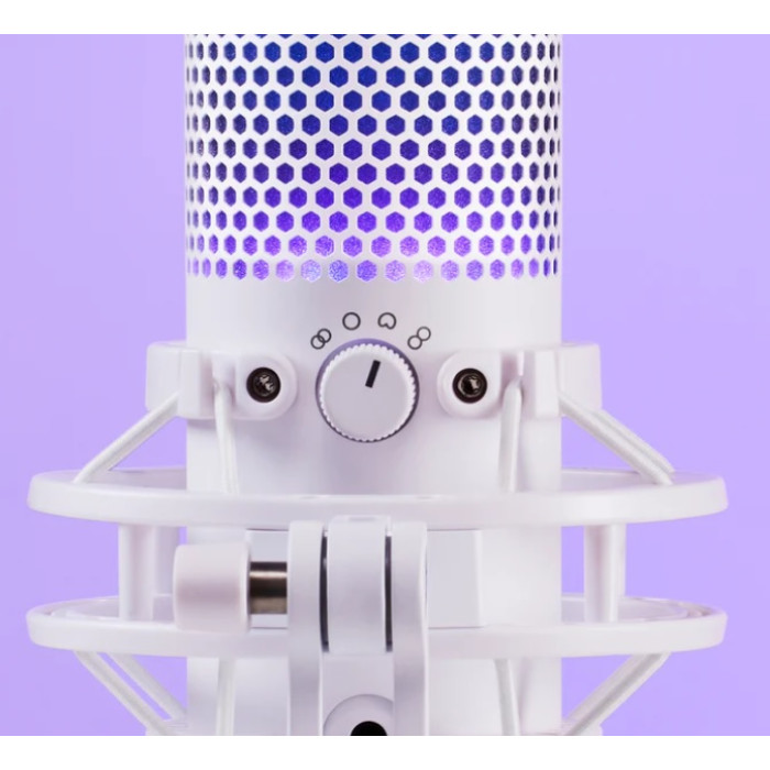 Микрофон HyperX QuadCast S RGB, White/Grey 519P0AA. HyperX QuadCast S - это конденсаторный USB-микрофон, который великолепно звучит и выглядит великолепно. Потрясающая RGB-подсветка и динамические эффекты придадут стиля и шарма любому потоку или настройке, а также настраиваются с помощью программного обеспечения HyperX NGENUITY. QuadCast S - это универсальный микрофон с антивибрационным противоударным креплением, помогающим приглушить шум повседневной жизни, и встроенным поп-фильтром для приглушения громких звуков.