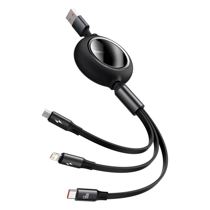 Кабель Baseus Bright Mirror 2 Series Retractable 3-in-1 Fast Charging Data Cable USB to M+L+C 66W 1.1m Black