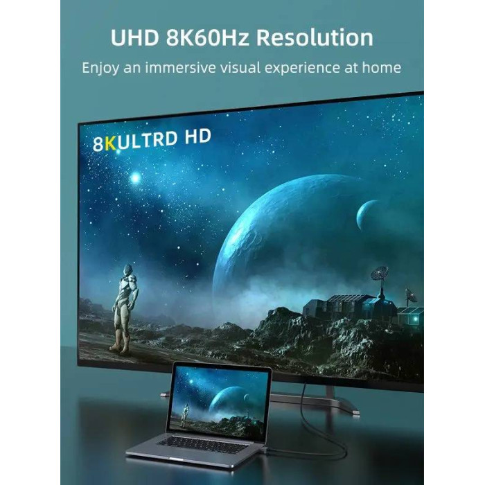 Як правило, кабель необхідний для з’єднання дисплея з комп’ютером, або аудіо та відеоапаратури із сучасним інтерфейсом DisplayPort. Підтримка: 8K 60 Гц / 4K 144 Гц / 2K 165 Гц / 1080P 240 Гц / Dynamic HDR / PLCM / AC-3 / DTS та інші аудіо формати.
