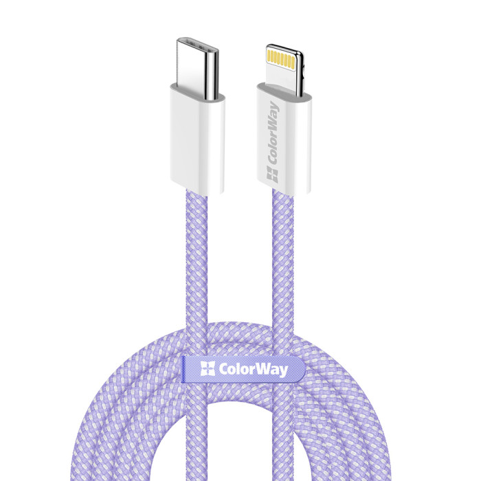 Кабель ColorWay Lightning + USB Type-C (M/M), 3.0 А, 1 м, Purple (CW-CBPDCL061-PU)