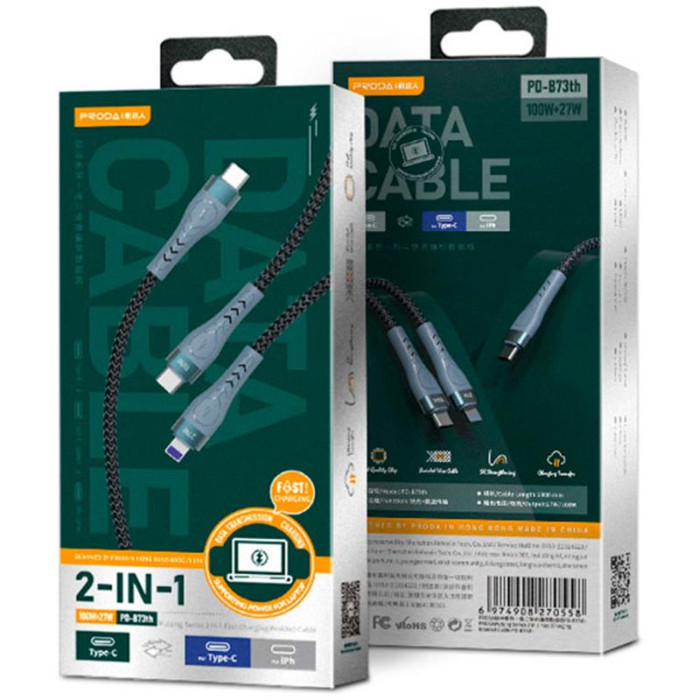 Переваги кабелю 2 в 1 Proda Azeada PD-B73 Type-C для Lightning Pulsing Fast Charging: