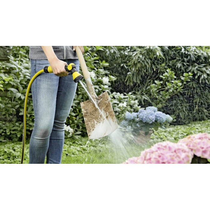 Мультифункціональний пістолет для поливу з 3 режимами розпилення: душ, точковий струмінь і конусний. Завдяки наявності блокуючої для режиму постійного поливу кнопки цей пістолет ідеально підходить для тривалого поливу різних рослин.