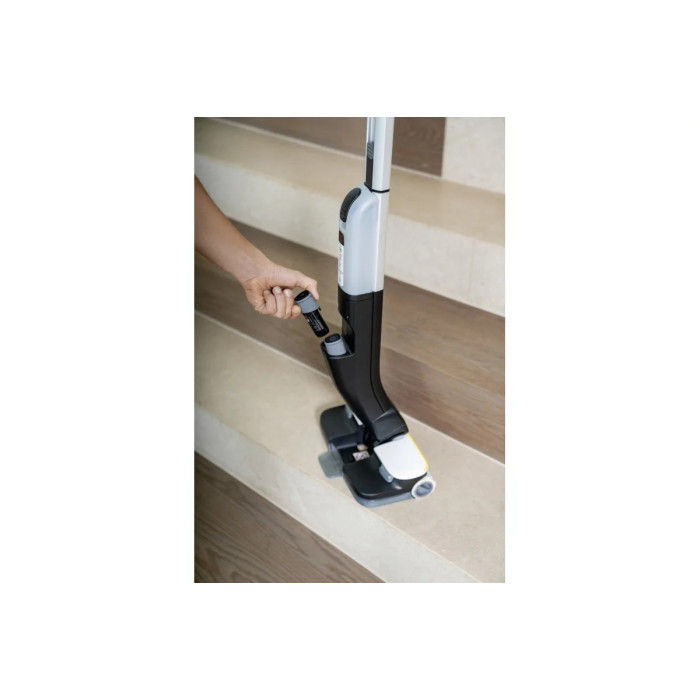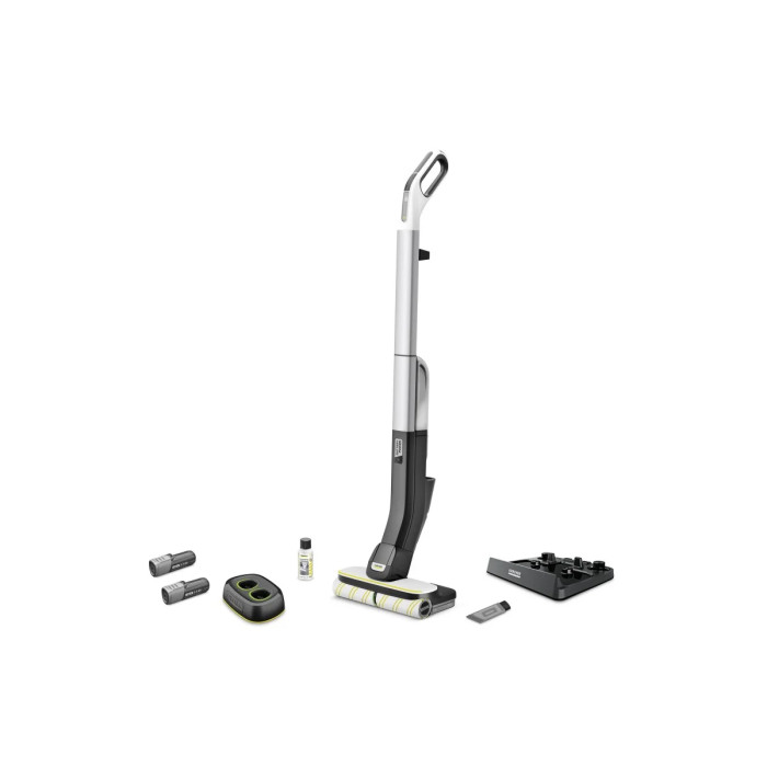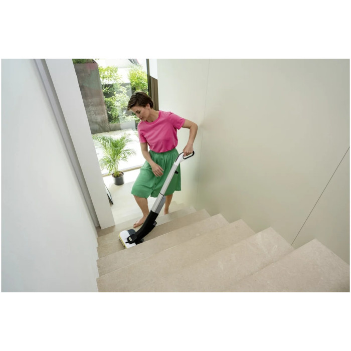 Для легкого, швидкого та ефективного прибирання підлогомийна машина Karcher FC 4-4 в один прийом видаляє як сухі, так і вологі забруднення. Поставляється зі змінними акумуляторами та зарядним пристроєм