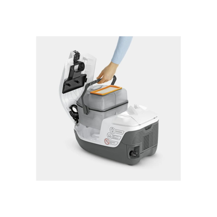 Пилосос Karcher з аквафільтром DS 6 Plus ретельно очищає не тільки підлогу, а й повітря, що випускається. Затримуючи 99,95 % пилу, він створює в приміщеннях сприятливий мікроклімат