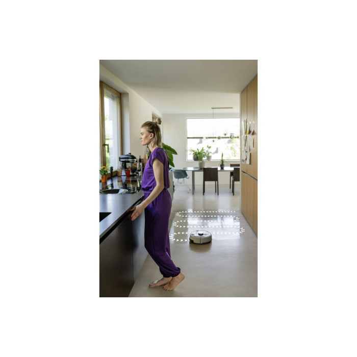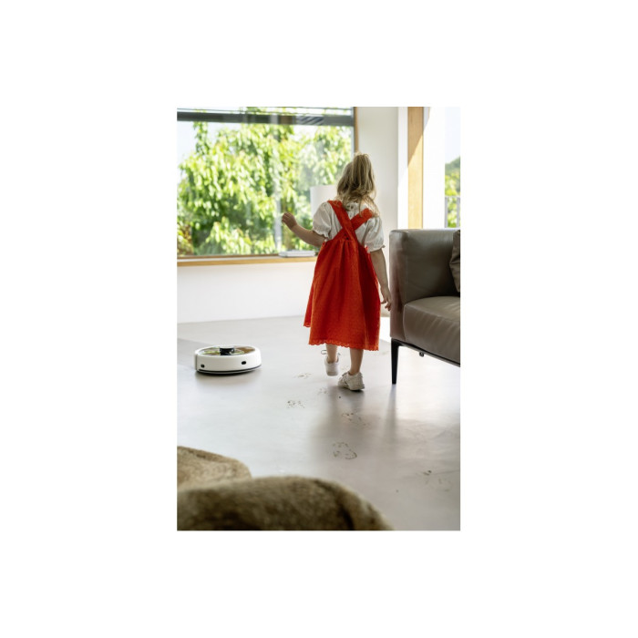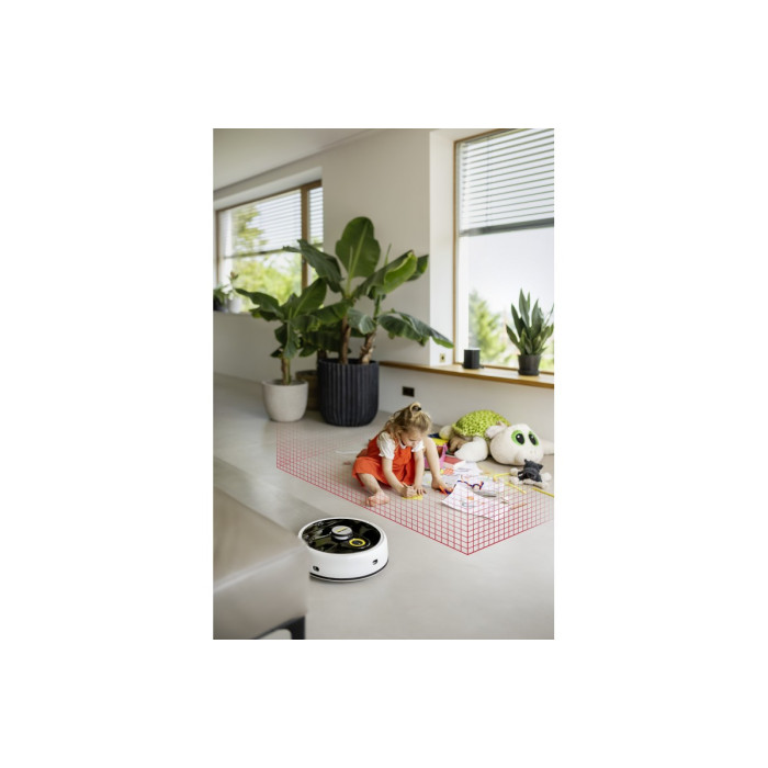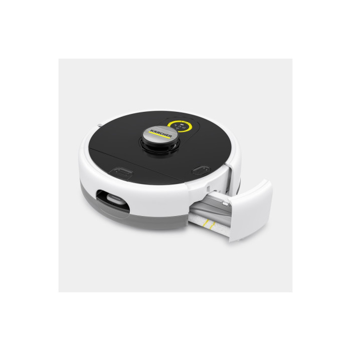 Karcher RCF 3 – інтелектуальний робот-пилосос з функцією вологого прибирання. Він ефективно видаляє пил, сухе сміття та плями завдяки роликовим щіткам. Автоматично розпізнає килими та оминає їх. Оснащений системою з 2 бачками, що забезпечує подачу чистої води та збір забрудненої. Керування здійснюється через мобільний додаток або кнопку на корпусі. У разі потреби робот повідомляє про необхідну допомогу голосом або через смартфон.