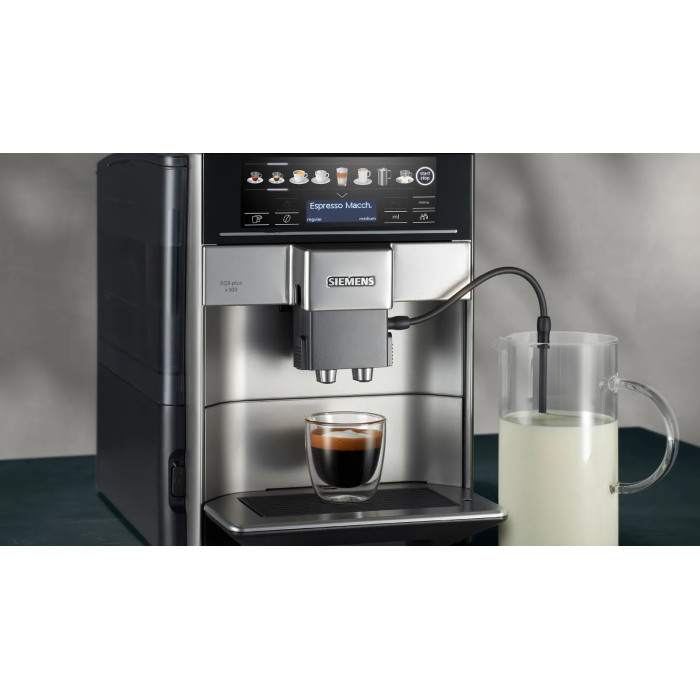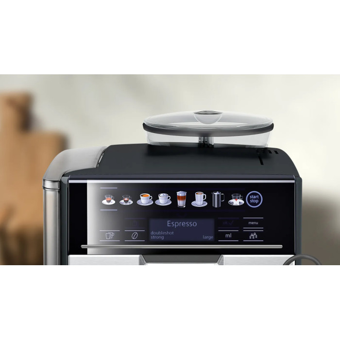 Кавомашина Siemens 1.7л, зерно + мелена, автомат.капучинатор, LED - дисплей, авторецептів - 12, чорно - срібний
