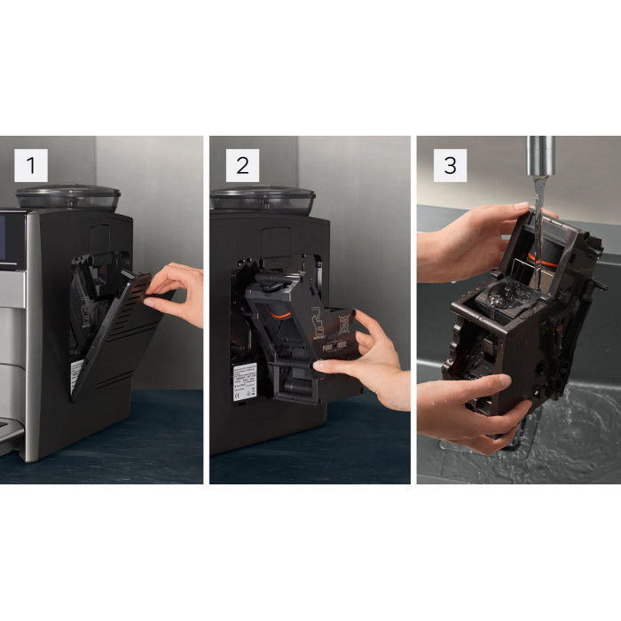 Siemens TE653M11RW — автоматична кавомашина з безшовним дизайном на 360° і керамічним млинком ceramDrive. autoMilk Clean автоматично очищує молочну систему парою після кожного напою, aromaDouble Shot забезпечує міцну каву без гіркоти. coffeeSelect та система iAroma забезпечують просте керування й стабільну якість. Підтримує збереження улюблених напоїв і має знімний заварювальний блок для швидкого догляду.