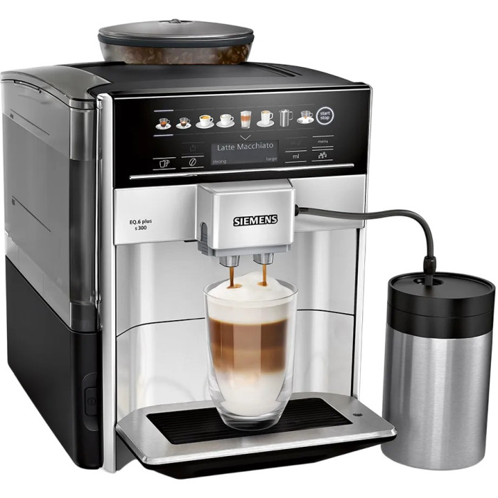 Кавомашина Siemens 1.7л, зерно + мелена, автомат.капучинатор, LED - дисплей, авторецептів - 8, чорно - срібний