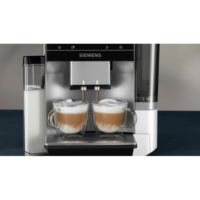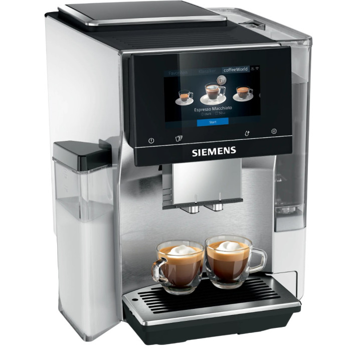 Повністю автоматична кавомашина Siemens EQ700 integral оснащена сенсорним дисплеєм iSelect display, системою iAroma та інтегрованою молочною системою з автоматичним очищенням autoMilk Clean. Модель підтримує приготування різних кавових напоїв через Siemens coffeeWorld і керування через Home Connect. Також передбачене приготування двох напоїв одночасно за допомогою функції OneTouch DoubleCup.