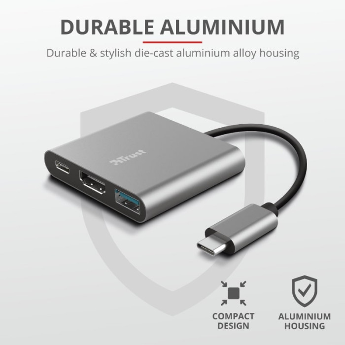 Хаб Trust Dalyx 3-in-1 USB-С > USB-А 3.2/USB-С/HDMI, Алюміній, 0.1м, чорний