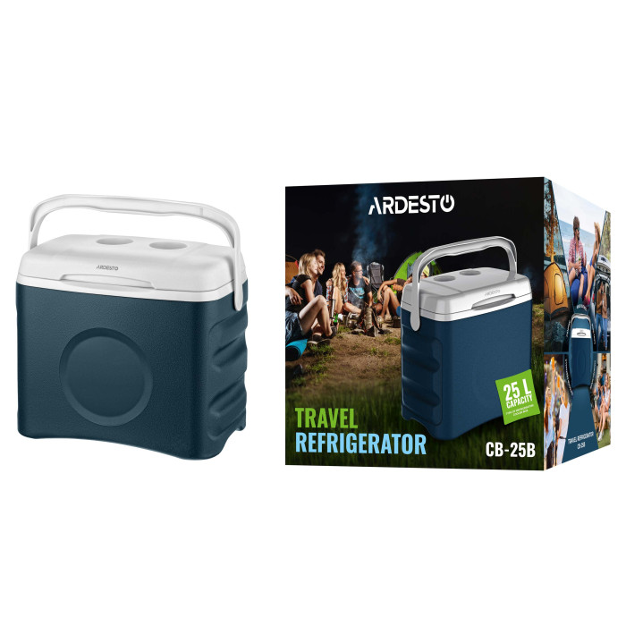 Дорожній холодильник ARDESTO CB-25B об’ємом 25 л поєднує місткість, практичність і продуману конструкцію. Завдяки теплоізоляції з PU (поліуретану) продукти тривалий час залишаються прохолодними або теплими, залежно від потреб. Холодильник має міцний корпус, стійкий до вологи, подряпин і механічних пошкоджень, а велике ергономічне руків’я забезпечує зручне перенесення і дає змогу фіксувати кришку у відкритому положенні. У разі знеструмлення оселі модель допоможе тимчасово зберегти продукти свіжими – завдяки ефективній ізоляції та акумулятору холоду, який до того ж можна використовувати як розділювач для організації внутрішнього простору.