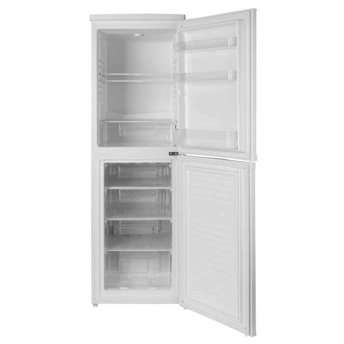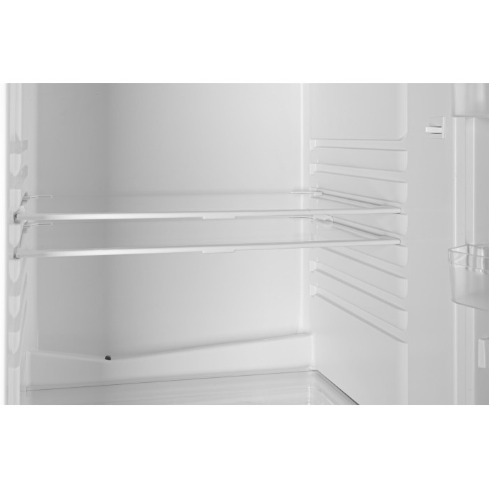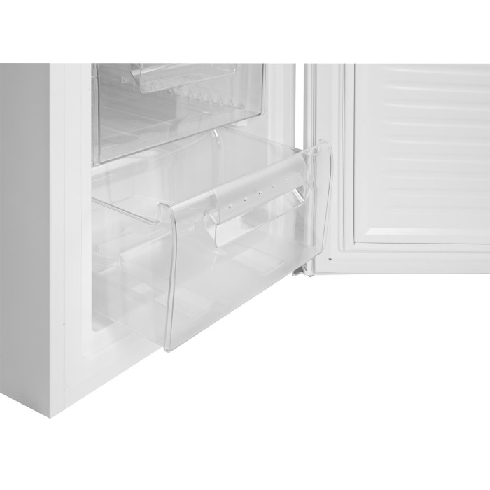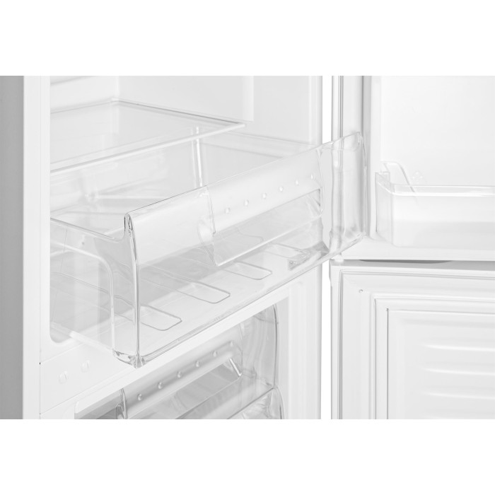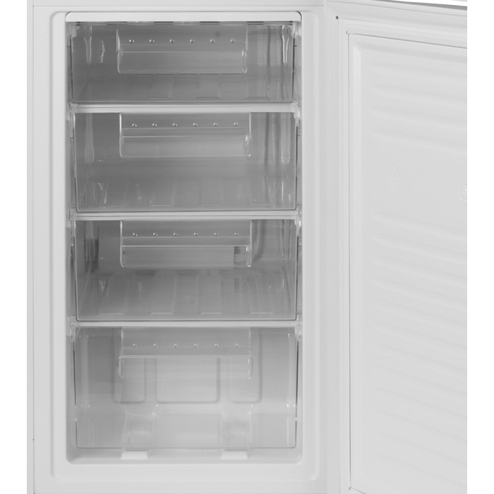 Морозильна камера має 4 шухляди (передня частина прозора з полістиролу, задня - біла). Холодильна камера складається з 3 скляних полиць, що розділяють холодильний простір, і доповнена шухлядою для зберігання овочів та фруктів.