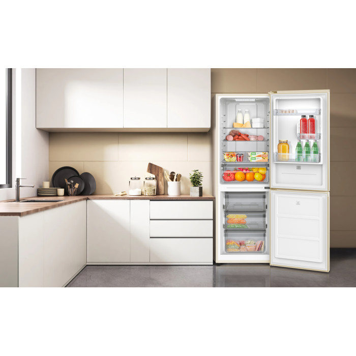 Холодильник Grifon NFN-185Bg із загальним об'ємом 290 л. Він виконаний у стильному мінімалістичному дизайні у кольорі бежевий нюд. Це робить його практичним у використанні, на ньому менше видно плями, а також дозволяє легко вписати в інтер'єр сучасної кухні. Є можливість перевішувати дверцята, що також полегшує вибір місця для холодильника в кімнаті.