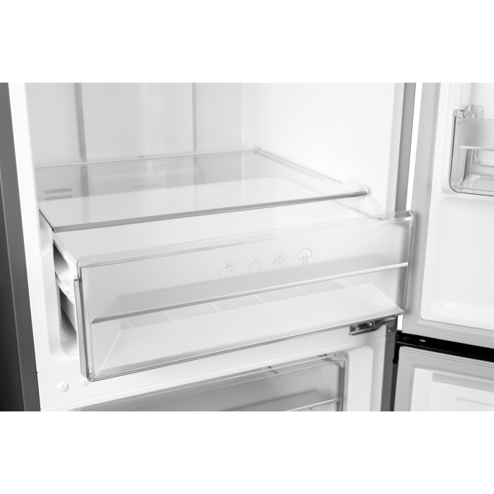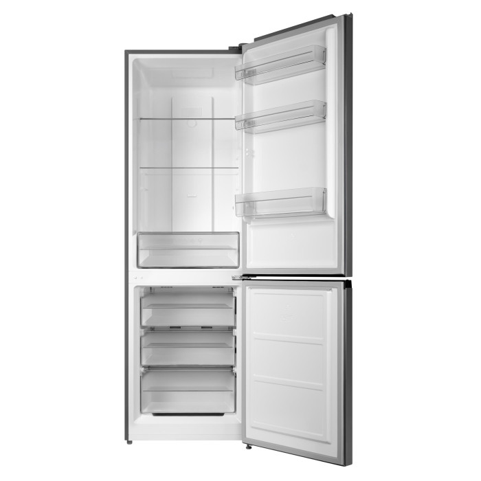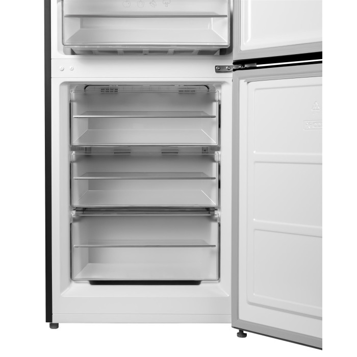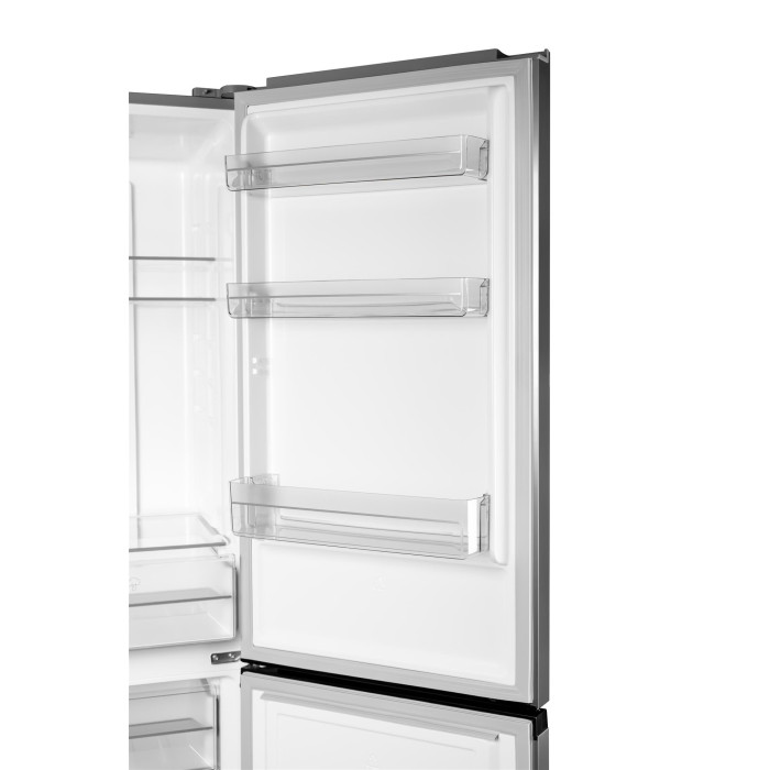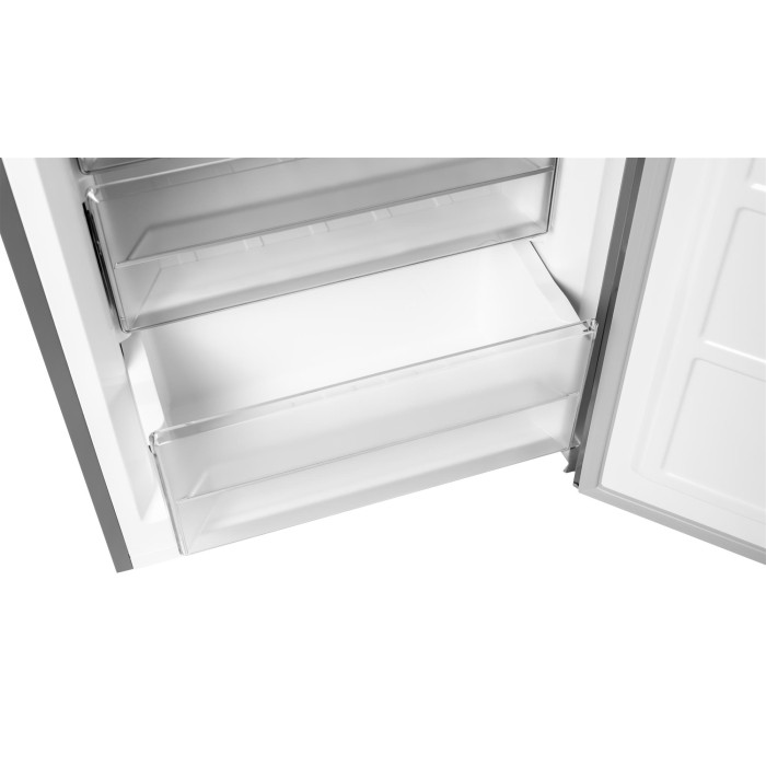 Модель NFN-185X виконана у металевому кольорі, що гармоную з сучасними кухонними інтер’єрами різних тонів. Холодильник висотою 185.8 см має два відділення: