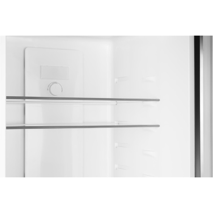 Основний відділ холодильника розрахований на 210 літри та має три полиці з загартованого скла. На них можна розмістити необхідні продукти, а якщо щось не вміщається по габаритах — висота полиць регулюється. Тут же знизу є ящик для свіжих овочів та фруктів, де зберігається рівномірна температура. Широкі та глибокі секції на дверцятах допоможуть безпечно зберігати пляшки та картонні пакети. Усього 3 великі секції.