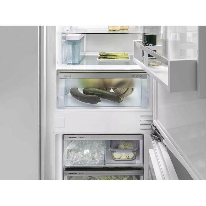 Вбудований холодильник Liebherr ICND5133 оснащений технологією NoFrost, яка усуває необхідність розморожування, та системою DuoCooling для незалежного регулювання температури у камерах. Відділення EasyFresh довго зберігатиме свіжість ваших продуктів. Завдяки льодогенератору IceMaker з резервуаром для води, у вас завжди буде достатньо льоду. Сучасний дизайн, LED-освітлення та висока енергоефективність роблять його ідеальним вибором для вашої кухні.
