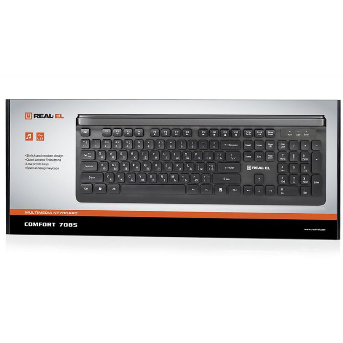 Стильний і сучасний дизайн, кнопки швидкого доступу FN, низькопрофільні клавіші та спеціальний дизайн клавіш - особливості клавіатури REAL-EL Comfort 7085.... Читать далее...