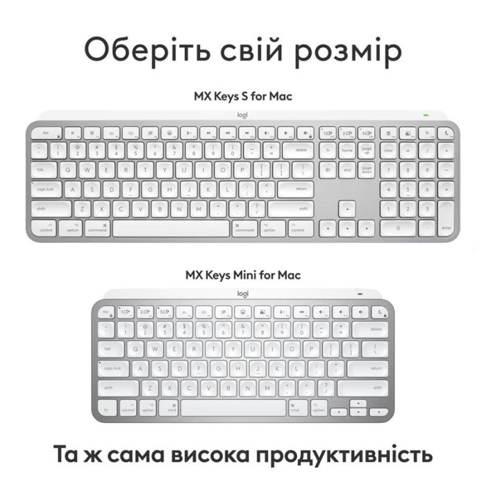 Клавiатура бездротова Logitech MX Keys S for Mac Pale Grey (920-011638)