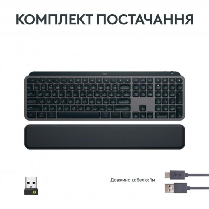 Клавiатура бездротова Logitech MX Keys S Plus Palm Rest Graphite (920-011589)