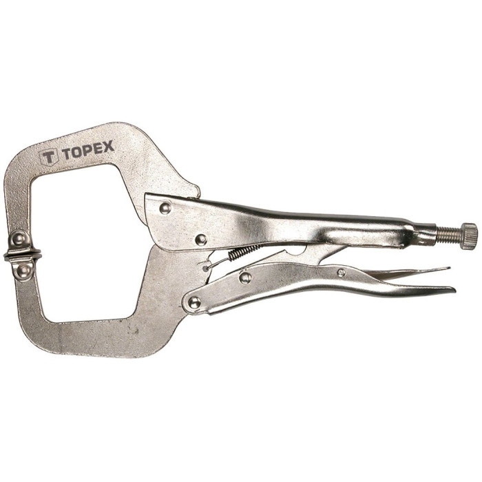 Кліщі зварювальні типу «С» TOPEX довжиною 280 мм і робочим діапазоном 0-40 мм. Застосовуються під час зварювальних робіт. Ергономічне руків’я зручно міститься в долоні, що додає комфорту під час праці. Марка TOPEX адресована майстрам, які займаються дрібним ремонтом.