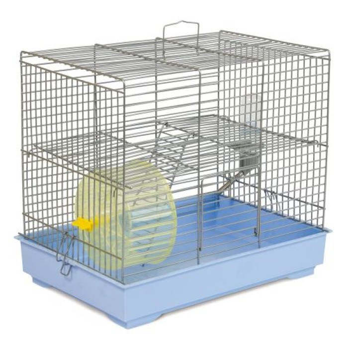 Клітка Природа «Міккі» для дрібних декоративних гризунів, з колесом 37x25x30 см (хром/світло-блакитна)