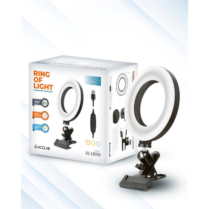 Лампа для блогера від ACCLAB AL-LR050 стане в пригоді б’юті-блогеру, ютуберу і всім, хто пов’язаний із відео- та фототворчістю. Три типи світла (холодне, нейтральне й тепле) дадуть змогу урізноманітнити ваші фото та відео. Зручне кріплення у формі прищіпки дає змогу налаштувати положення лампи у будь-якому зручному положенні. Кільцева лампа забезпечує рівномірне освітлення, за потреби можна скерувати в будь-який бік.