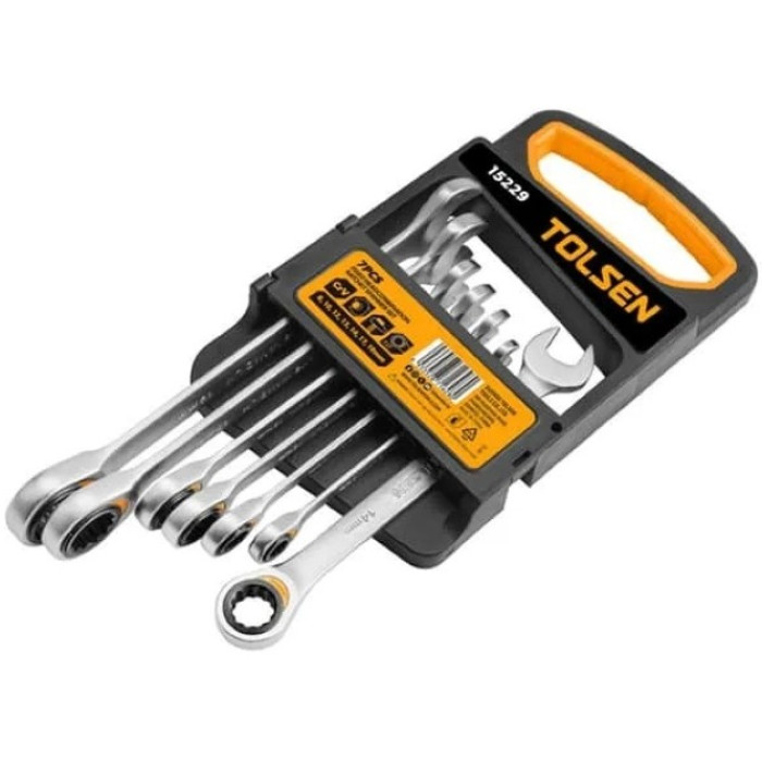 Ключі гайкові Tolsen, храповий механізм, 8-19мм, CrV, набір 7шт