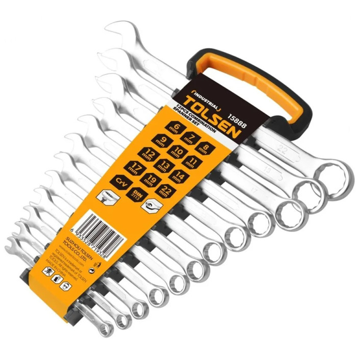 Набір комбінованих ключів Tolsen Профі із 12 інструментів розміром від 6 до 22 мм – це надійний вибір для професійного використання завдяки міцній конструкції з хром-ванадієвої сталі (CrV).
